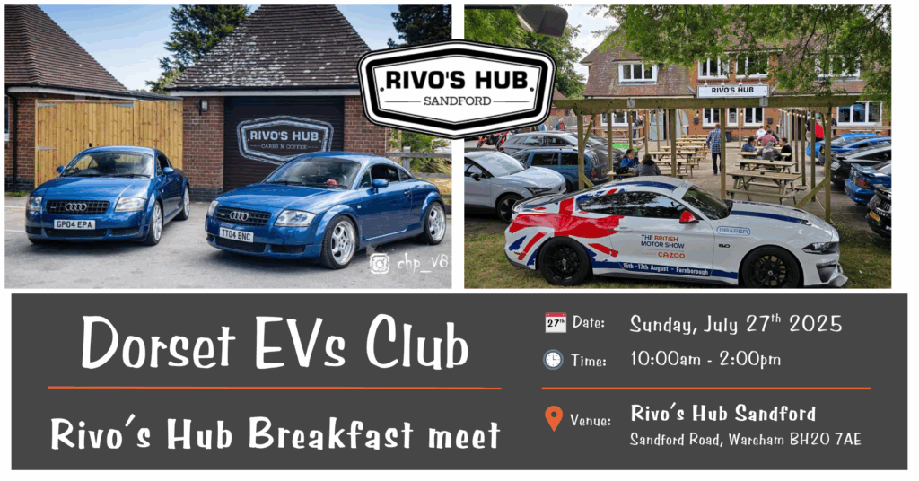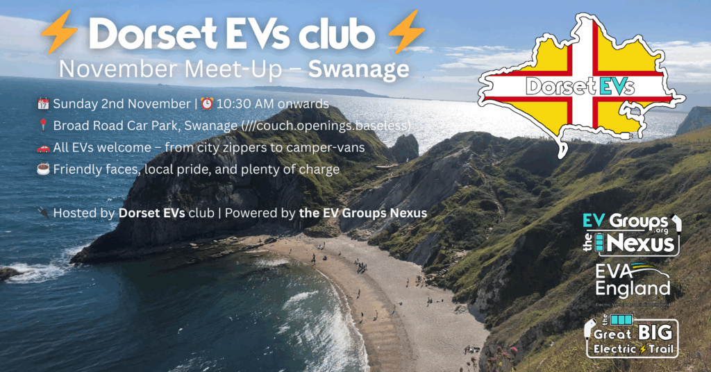 ☕⚡ **Dorset EVs November Meet-Up – Swanage Edition** 📅 Sunday 2nd November 🕒 10:30 AM onwards 📍 Broad Road Car Park, Swanage (///couch.openings.baseless) It’s the final Dorset EVs club gathering […]
