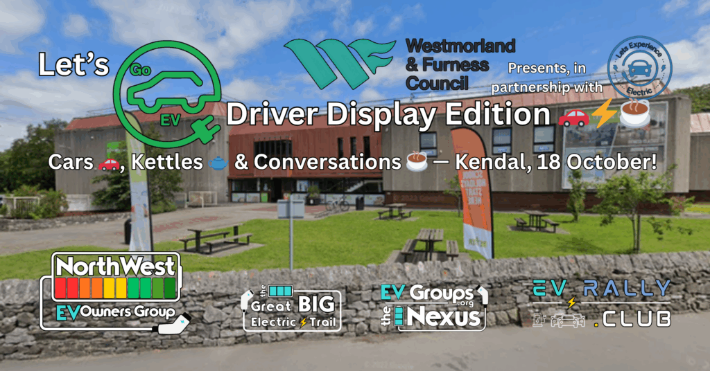 Let’s Go EV! — Driver Display Edition 🚗⚡☕ 📅 Saturday 18 October 2025 🕙 9:00-9:30am arrival – stay till 2pm if you can 📍 Kendal Leisure Centre, Burton Road, Kendal, […]